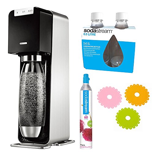 Sodastream 소다 스트림 페이퍼 이미지 소다 스트림 소스 파워 스타터 키트 + 가스 실린더 60L + 퓨즈 보틀 500ml 2개 세트 + 실리콘IH매트 3매 세트