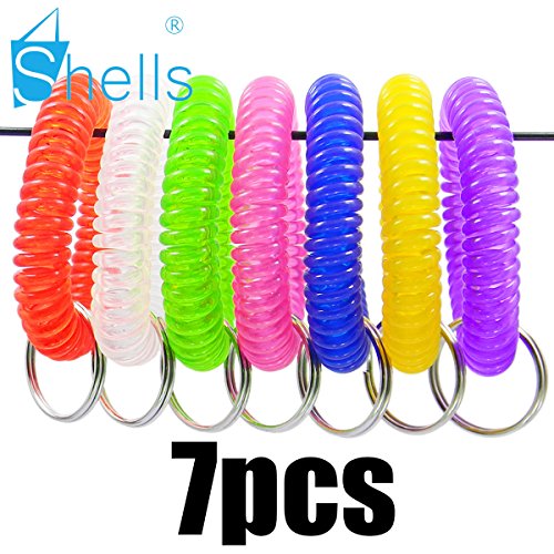 Shells Crystal Color Soft Strong Highly Spring Spiral Coil Wrist Band Key Ring Chain, 7PCS