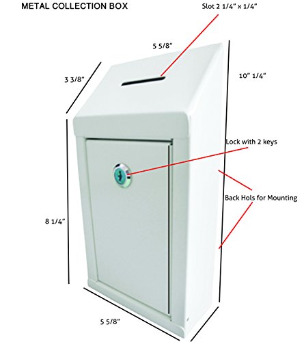 My Charity Boxes - Metal Donation Box & Collection Box - Suggestion Box - Secure Box - With Top Coin Slot and Lock Included with 2 Keys - Easy Wall Mounting or Counter Top Use