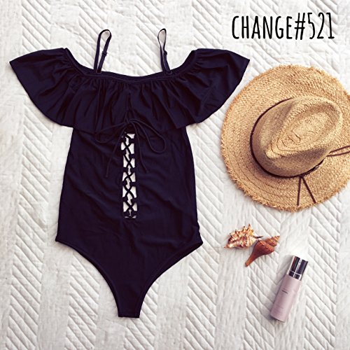 -. Title : 【misorara】オフショルダー レースアップ ワンピース モノキニ 水着。黒 スカイブルー 青 ハイウエスト
