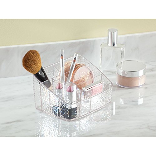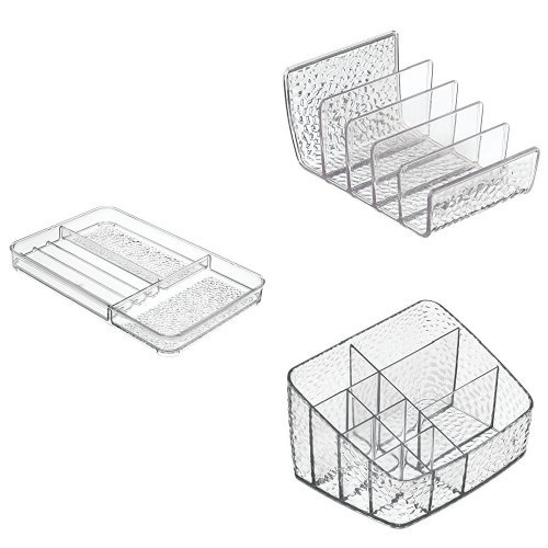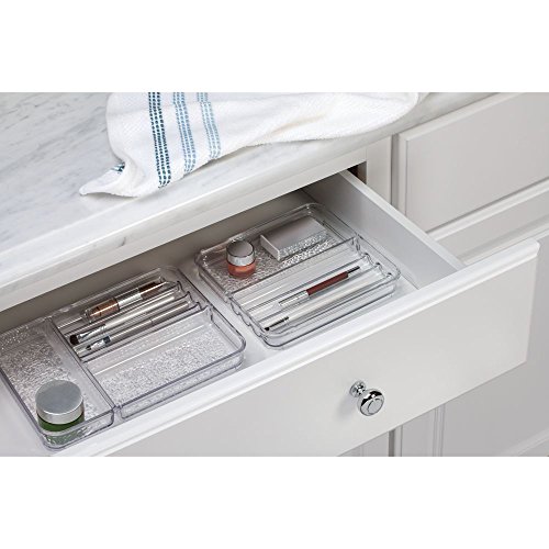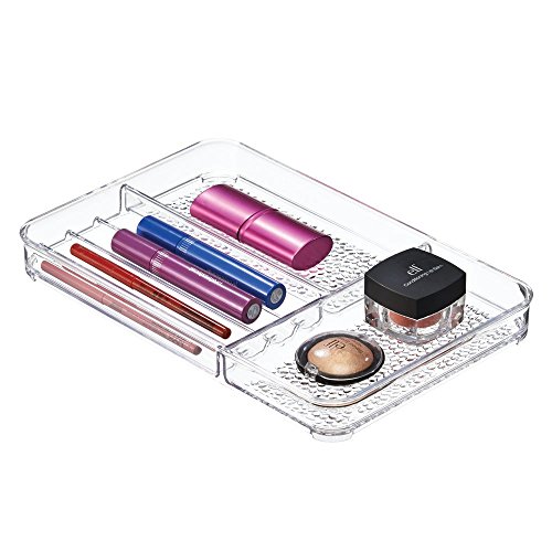 InterDesign Rain Cosmetic Organizer Tray for Vanity Cabinet to Hold Makeup, Beauty Products - Medium, Clear with Palette Organizer and Cosmetic Organizer (3 Piece Cosmetic Organization Bundle)