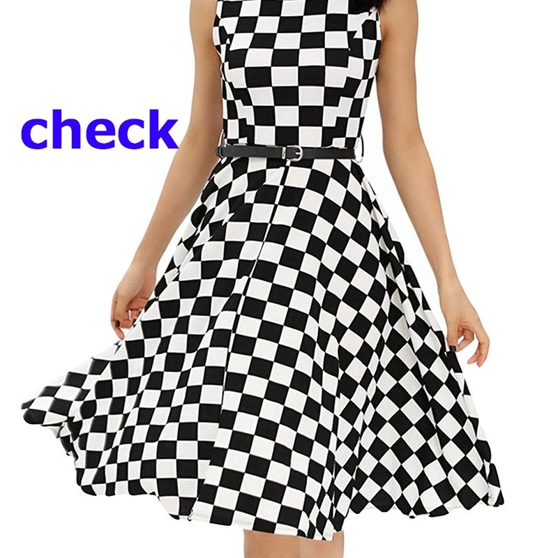 50年代を思わせるレトロなドット柄とブロックチェック柄のワンピースです。