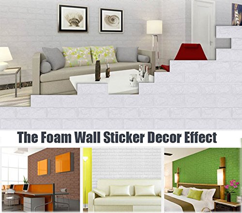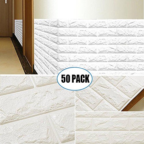 50 Pack 3D Brick Wall Stickers, PE Foam Self-adhesive Wallpaper Removable and Waterproof Art Wall Tiles for Bedroom Living Room Background TV Decor ( 23.62"X 23.62" inch)