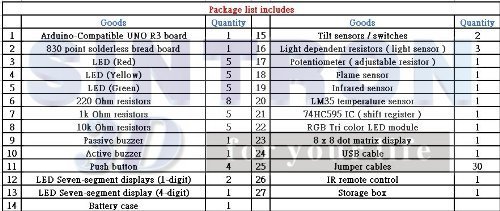 (1) A complete set of Arduino's most common and useful electronic components.