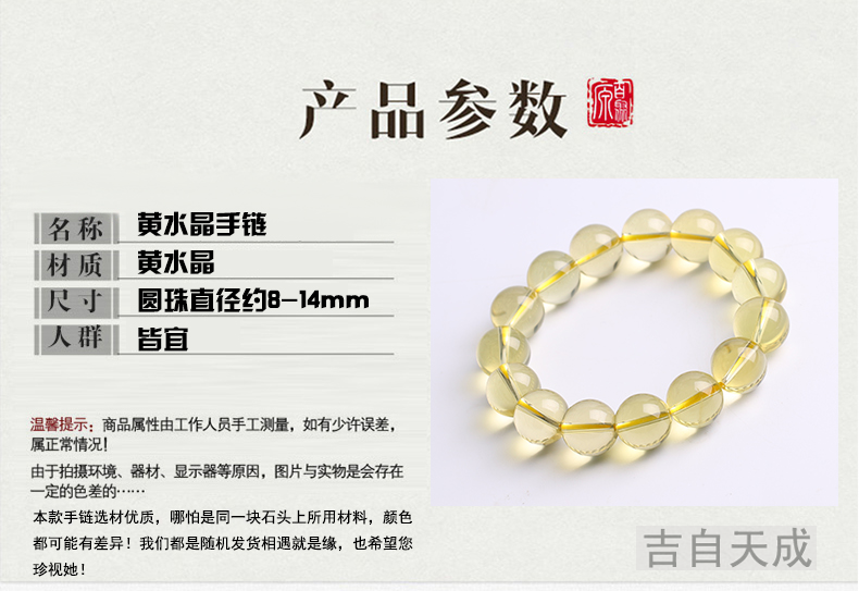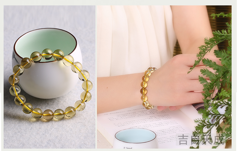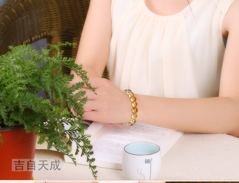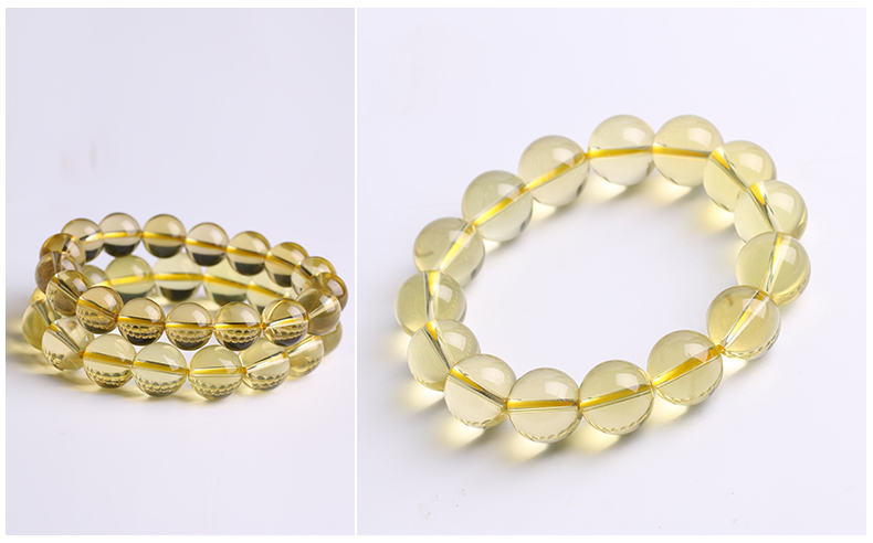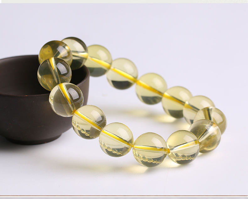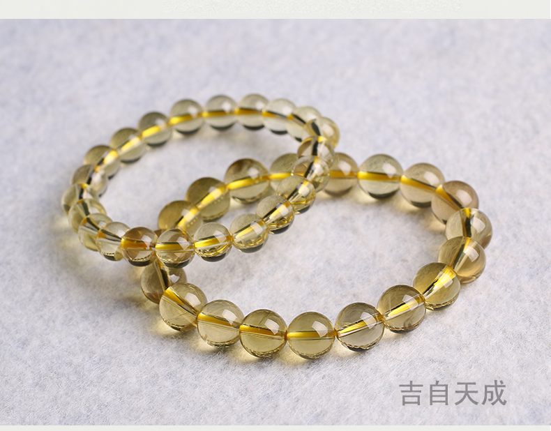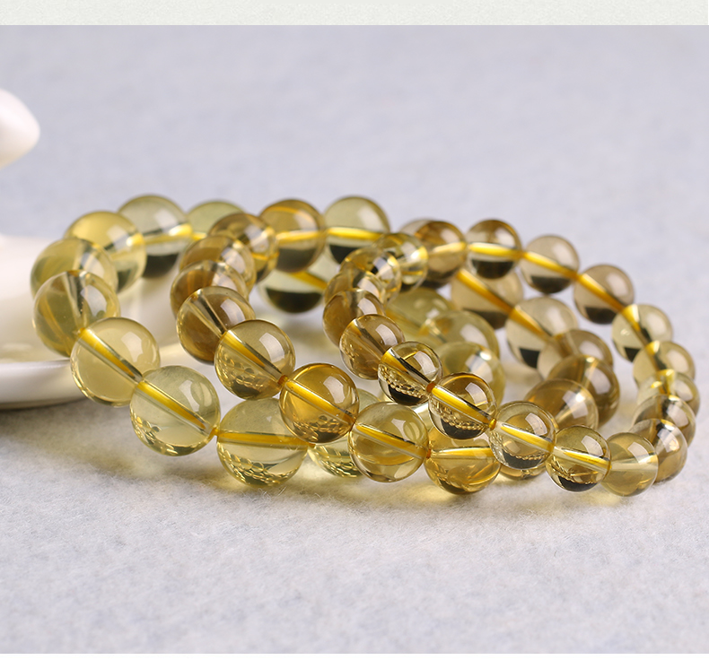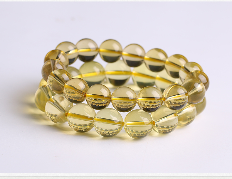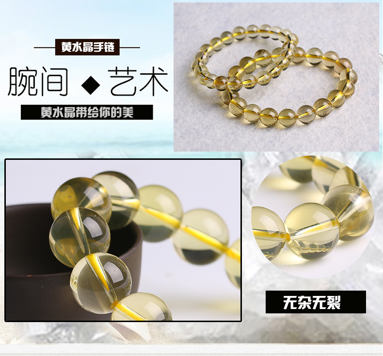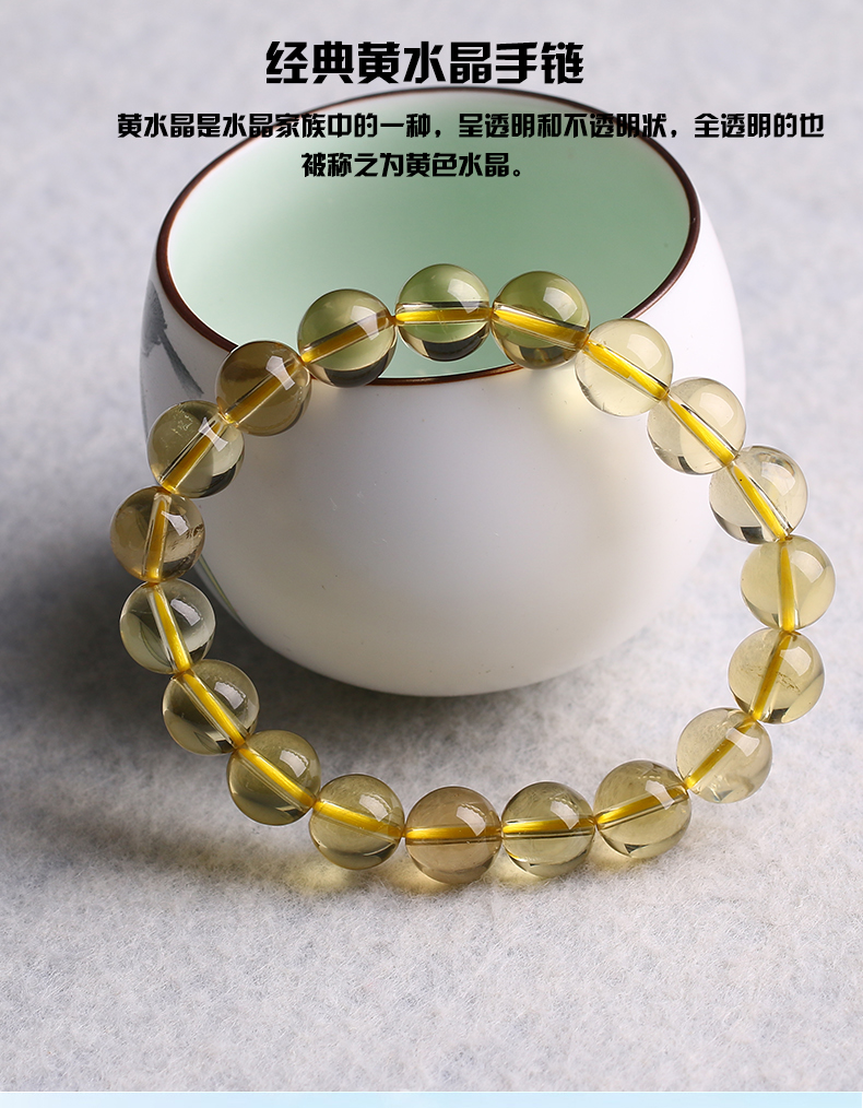 开光黄水晶手链男女款 柠檬黄水晶单圈手串 水晶时尚饰品