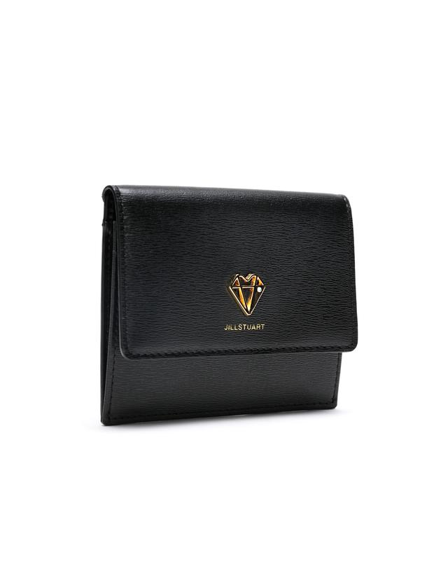 베이직한 블랙 가죽 디자인에 질스튜어트만의 쁘띠 다이아 로고장식으로 포인트를 준 카드지갑입니다.