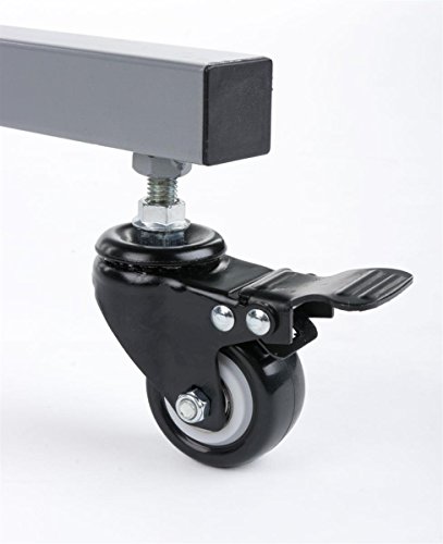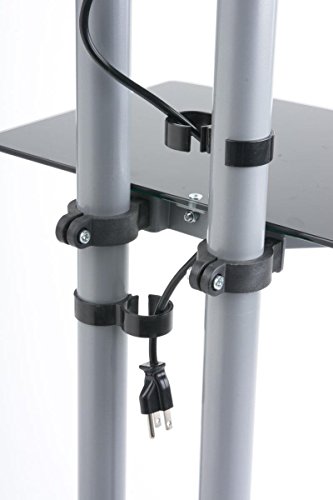 -. Feature : Height-adjustable mounting bracket accommodates flat-screen monitors between 32" and 50" that weigh no more than 99 pounds / Glass shelf is height-adjustable - use to display gaming consoles, DVD players or even presentational literature / VESA-compatible mounting patterns fit most brand-name monitors / Locking wheels increase stability during a presentation / Dimensions: Overall: 28.25"w x 62"h x 32.5"d