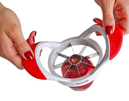 ★ EASY TO USE – Simply place your juicy Apple on a firm, hard service, position the centre of the slicer over the core of the apple (or pear), apply firm downward pressure... and voila, 8 perfectly sliced pieces fruit (minus the nasty core!)