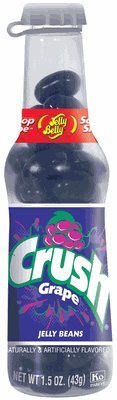-. Feature : Soda Pop flavored Jelly Belly Jelly Beans in cool plastic bottle containers. / Assortment of Dr. Pepper, Crush Orange, 7-UP, A&W Root Beer, and Crush Grape. / Each bottle is 4.5 inch tall and bottom diameter 1 inch. / Box contains contains 24 Jelly Belly Soda Pop Shoppe Jelly Beans Bottles, each with a net weight of 1.5 ounces.