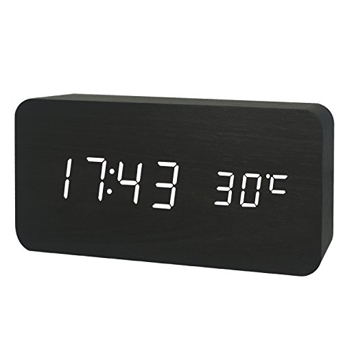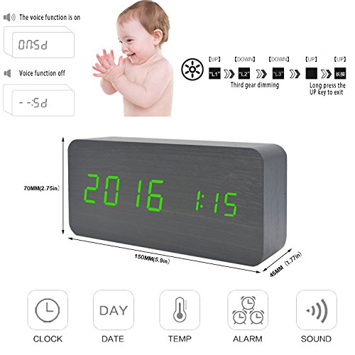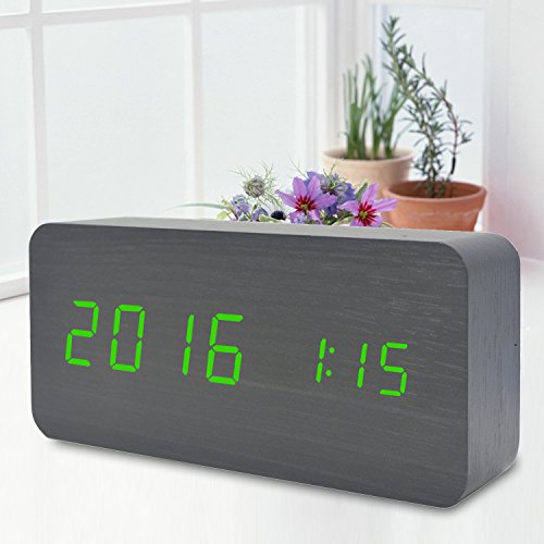 GO HAND LED Wood Alarm Clock Desktop Electronic Snooze Travel Home Modern Fashion Calendar Digital D