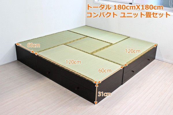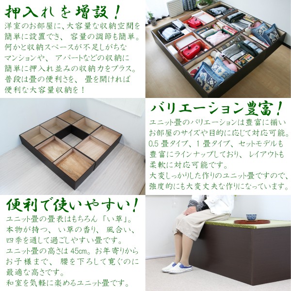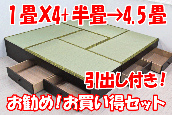 ■引出し付き1畳用ユニット畳2本+1畳用ユニット畳2本+半畳をセットにした4畳セットモデルです。