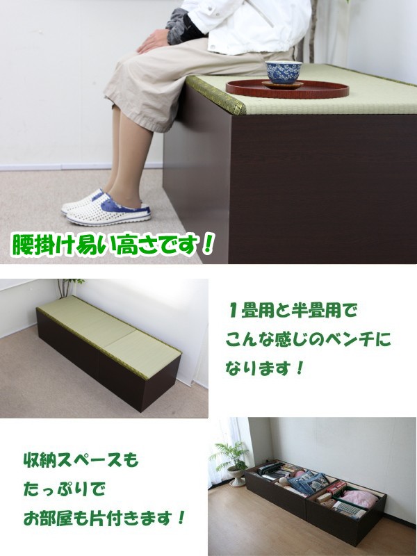 ■お部屋のコーナーに、省スペースの和室を! リフォームなどの工事不要で、手軽に設置 畳ベンチにもベッドにも組み合わせも自由自在 畳部分は天然表使用。