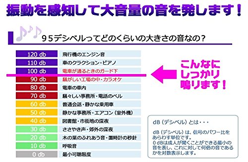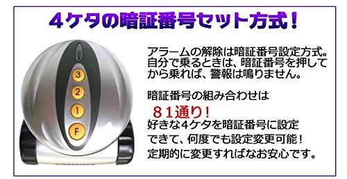 バイク、スクーター、自転車、ベビーカー、車イス、耕運機等の盗難防止用の振動感知型アラーム(驚音+点滅ランプ)です。特徴は2段階方式警告で、最初の振動では警告音で、更に振動を与えると95dBのアラームが30秒間鳴り続けます。暗証番号を入力しないと止まりません。