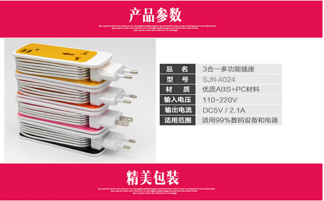 Muniti-Function Travelling 3 in 1 Dual USB Universal Socket