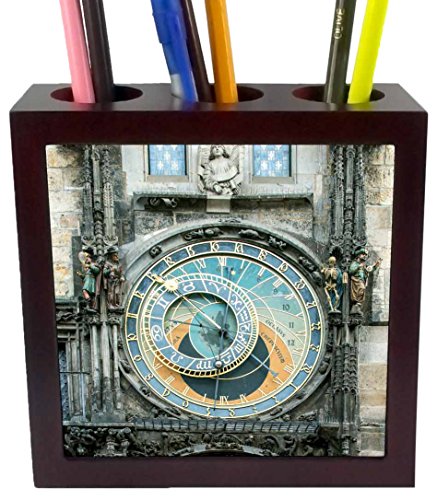3dRose ph_208777_1 Europe, Czech Republic, Bohemia, Prague, Astronomical Clock Tile Pen Holder, 5"