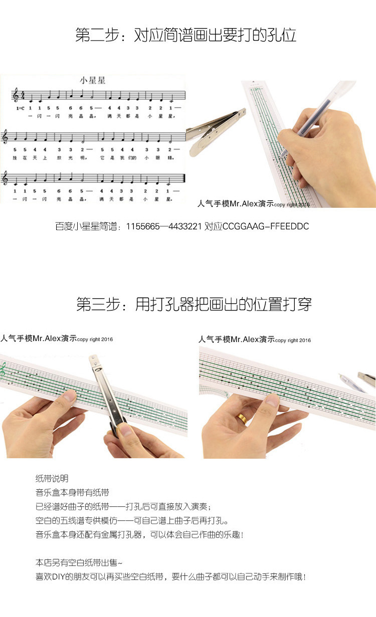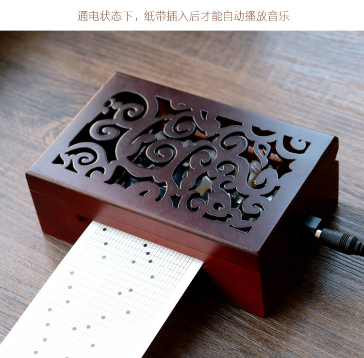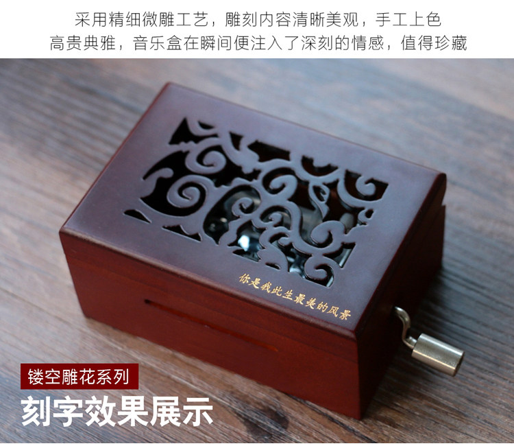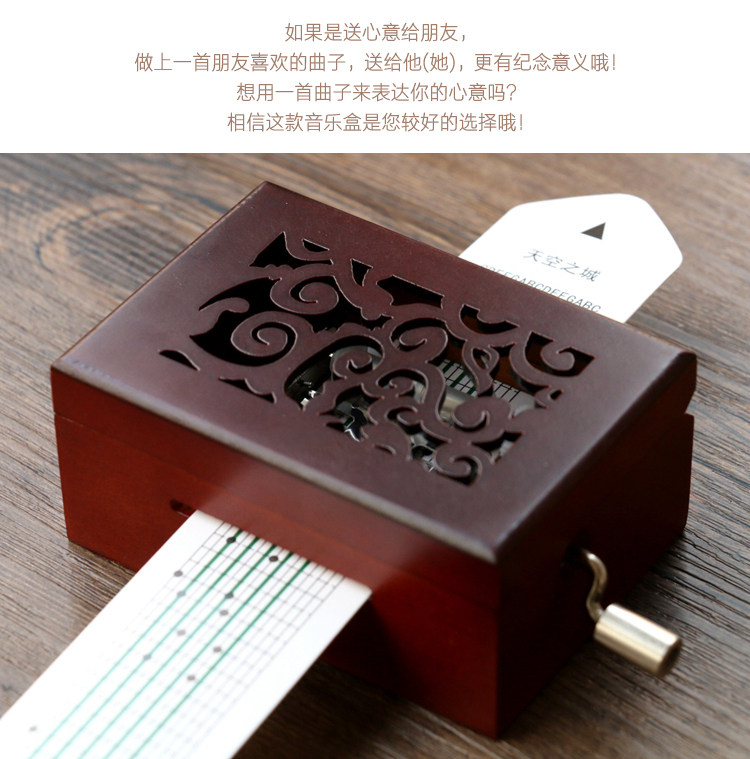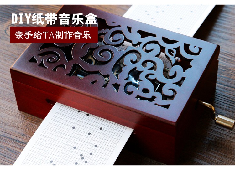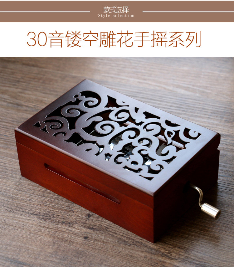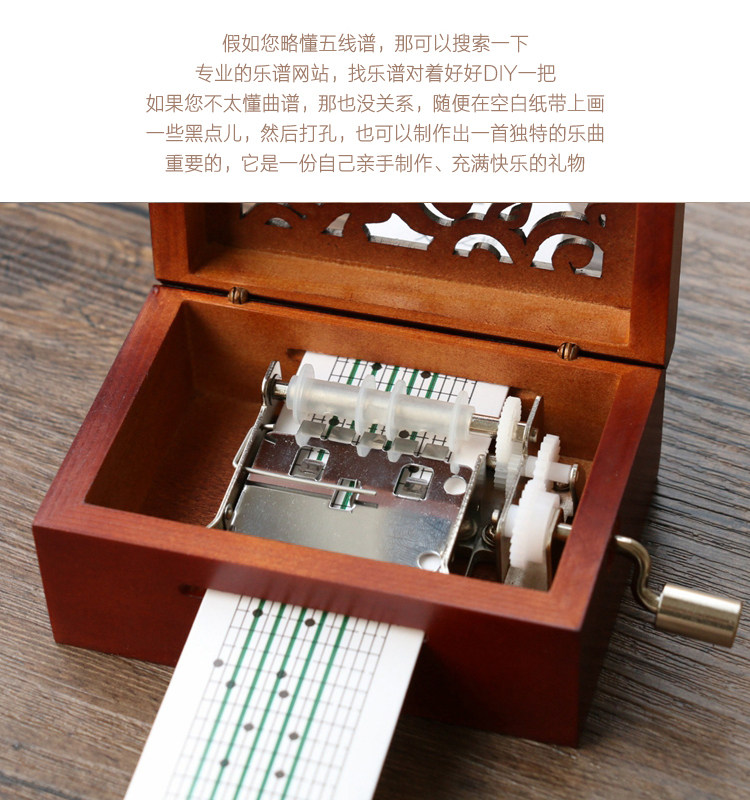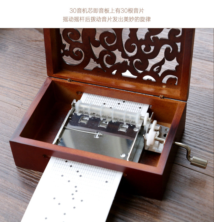 15/30音刻字复古手摇纸带音乐盒木质diy八音盒创意生日礼物送女生
