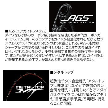 「홍어금니 AGS」서는 그 이름과 같이,종래의 금속 가이드 보다 경량 고감도인 다이와 독자적인 카본 가이드『AGS(에어 가이드 시스템)』를 탑재한 타이 러버 전용 로드.…
