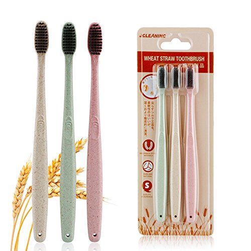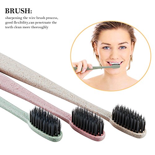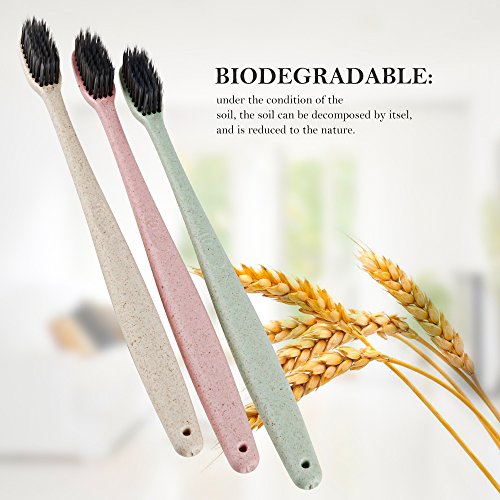 -. Feature : 6 toothbrushes will last one person a full year / Using wheat straw, starch, styling agent, hot forming, showing wheat qualities; / No heavy metals, Bisphenol-A or other traditional materials with harmful substances, distributed faint fragrance; / In a certain temperature and humidity, placed under the soil, can be self-decomposition, very environmentally friendly; / Prepared long carbon hair, its toughness, good softness, can effectively remove the oral odor, comfortable and easy to clean