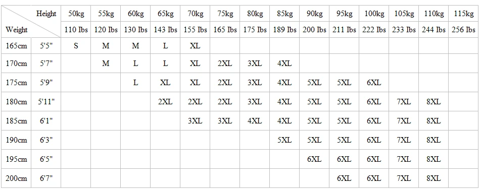 Asian Size:S M L XL XXL XXXL 4XL 5XL 6XL 7XL 8XL