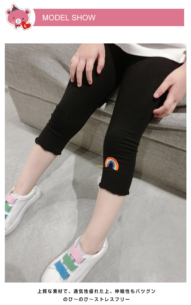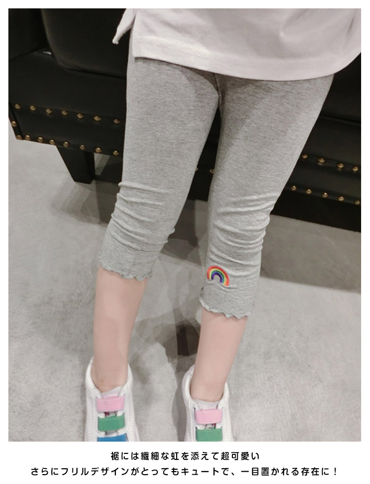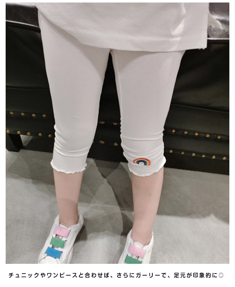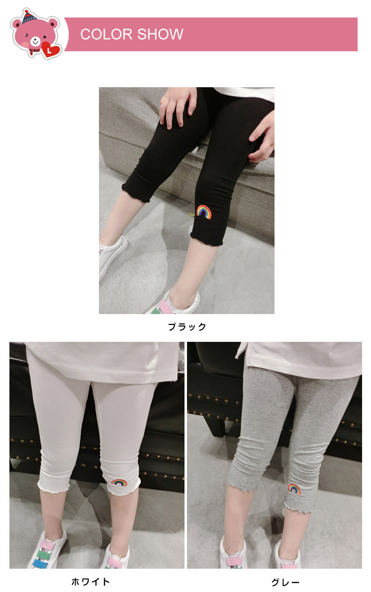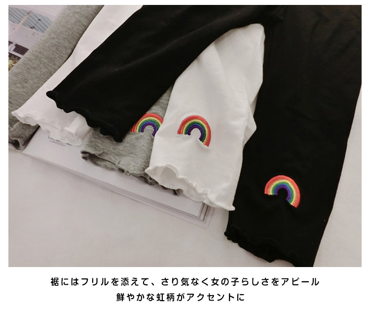 | 可愛い虹刺繍裾フリルコットンレギンス裾には繊細な虹を添えて超可愛いさらにフリルデザインがとってもキュートで、一目置かれる存在に!上質な素材で、通気性優れた上、伸縮性もバツグンのび?のび?ストレスフリーチュニックやワンピースと合わせば、さらにガーリーで、足元が印象的に◎ | |