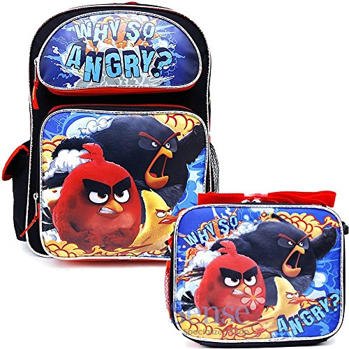 ANGRY BIRDS 16" INCHES LARGE BACKPACK & LUNCH BOX - WHY SO ANGRY? NEW LICENSED