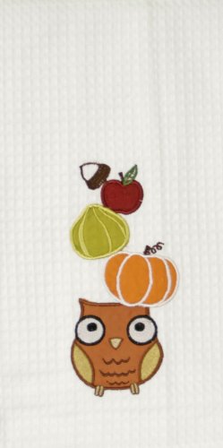 Whimsical Wise Harvest Hoot Owl Kitchen Waffle Weave Cotton Towel