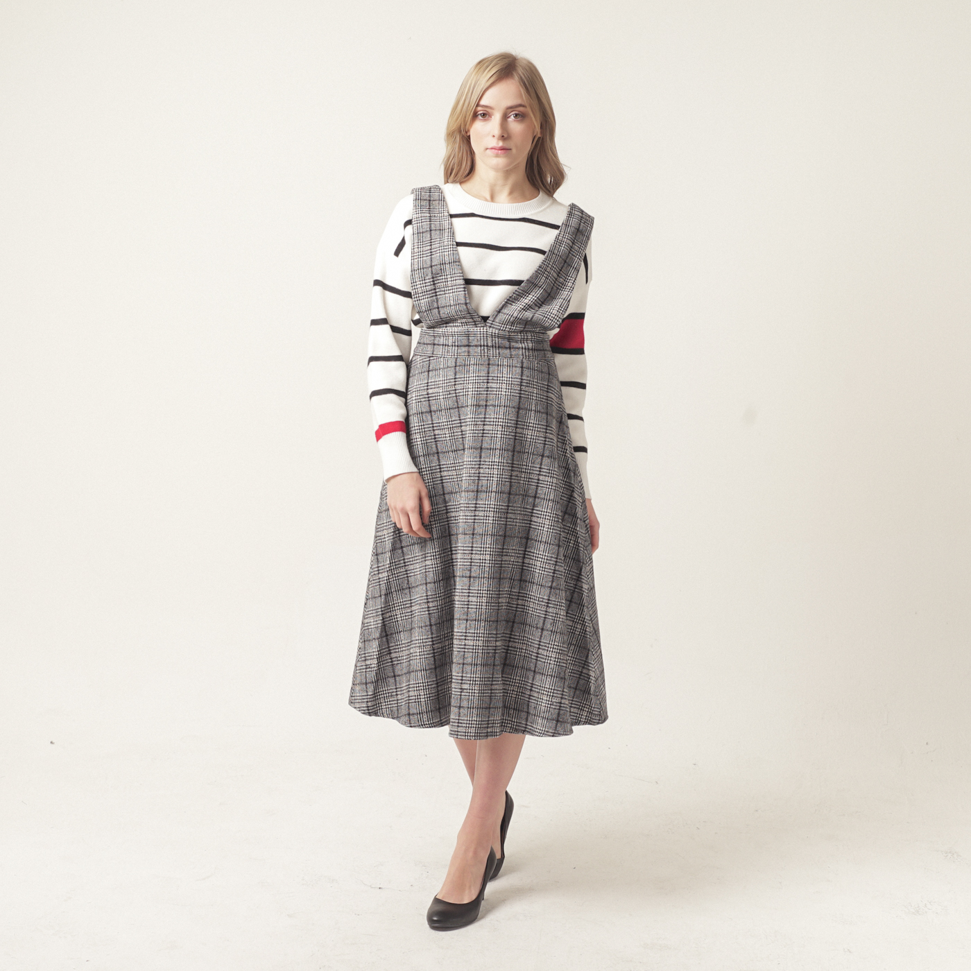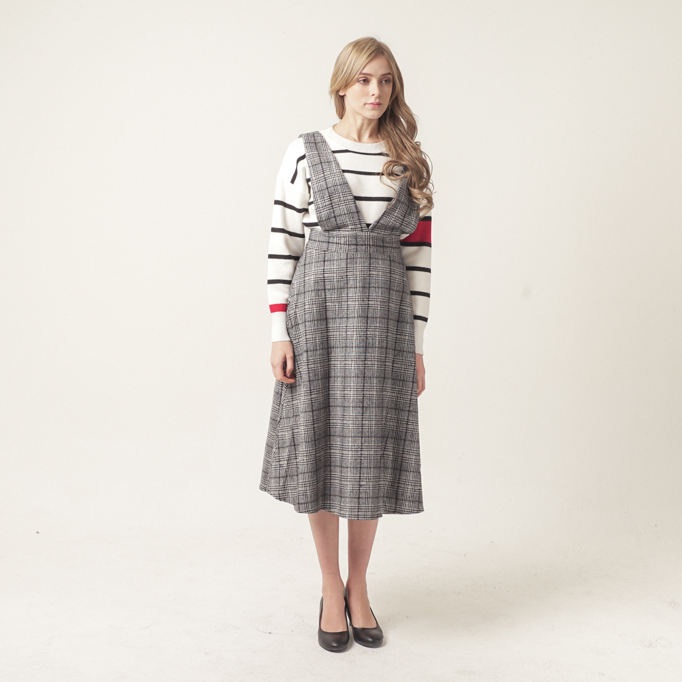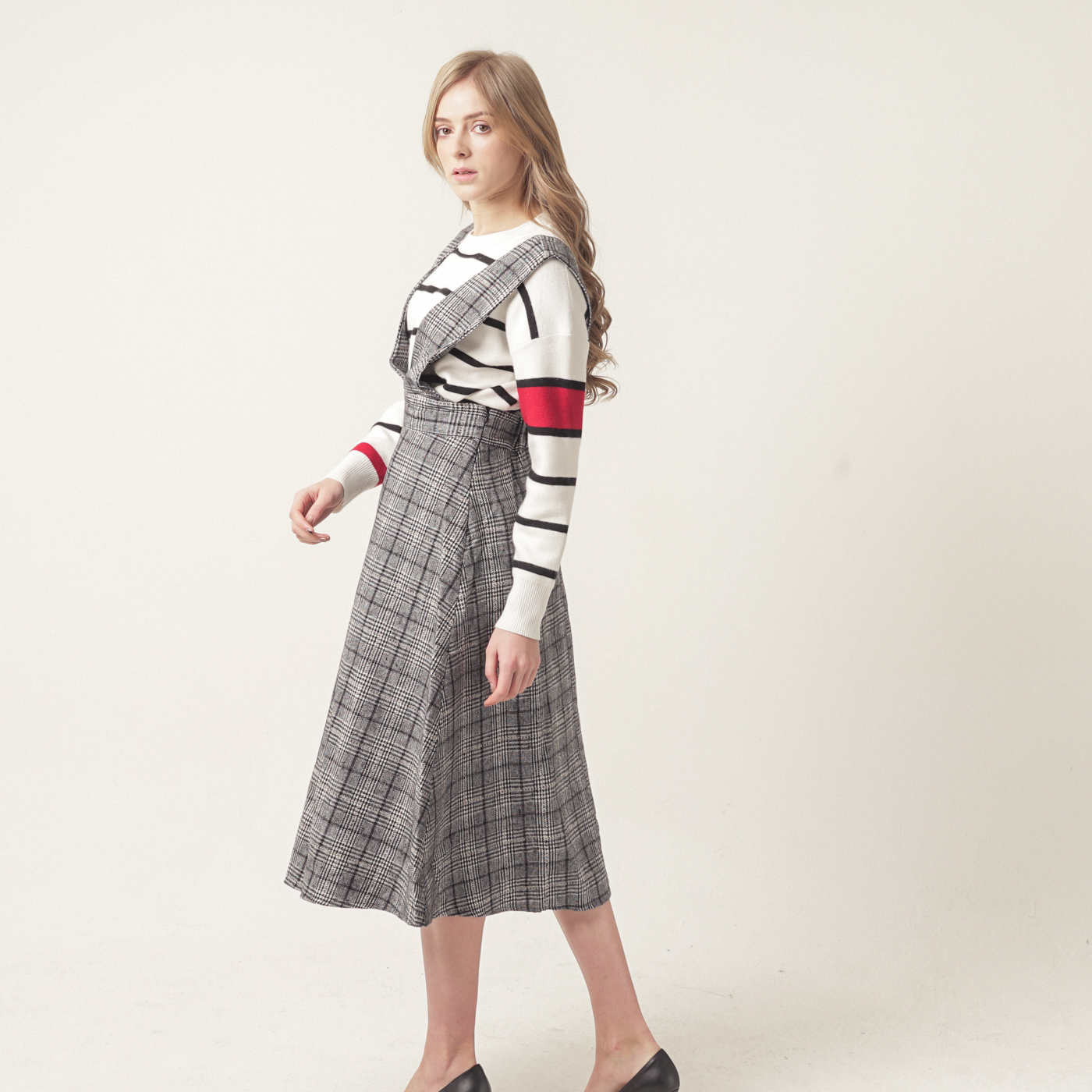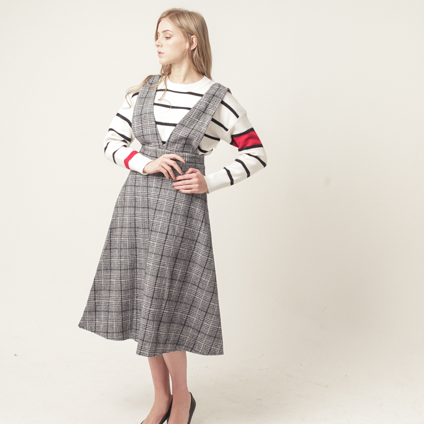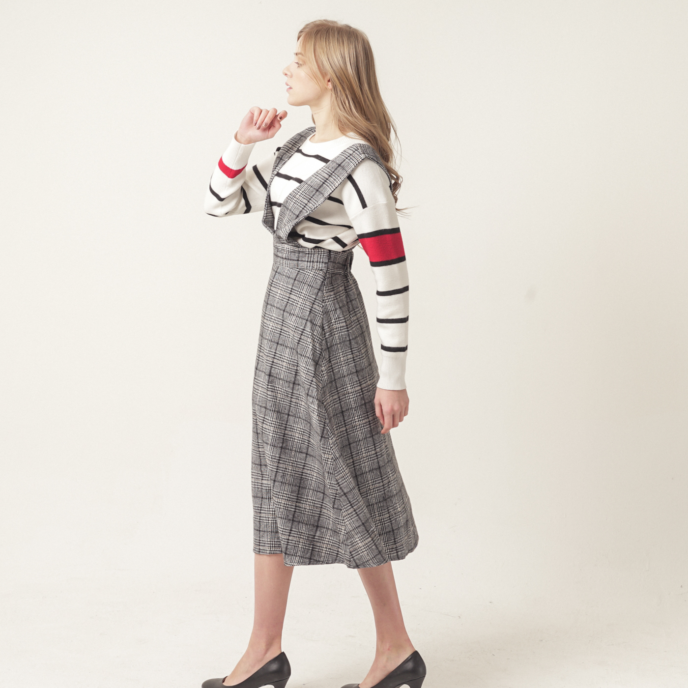 고급스런 체크 패턴의 퀄리티가 훌륭한 스타일입니다.