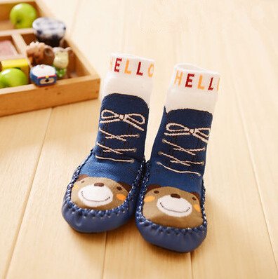 2014 new children's winter socks Thick terry socks non-slip bottom floor socks baby soft bottom Toddler socks Foot Socks Soft Slipper Socks shoes for 2-3 years old baby navy-dog