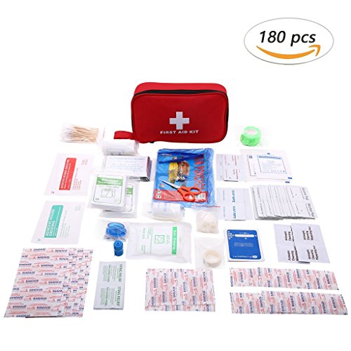 - DURABLE and PORTABLE:(8.7" x 5.5" x 2.4", weighs only 0.77 pound) first aid bag that's easy to carry, small and lightweight, yet holds all the essential emergency supplies (180 pcs with long shelf life). Having all the basic first aid items gathered ahead of time to help you handle an emergency at a moment's notice.