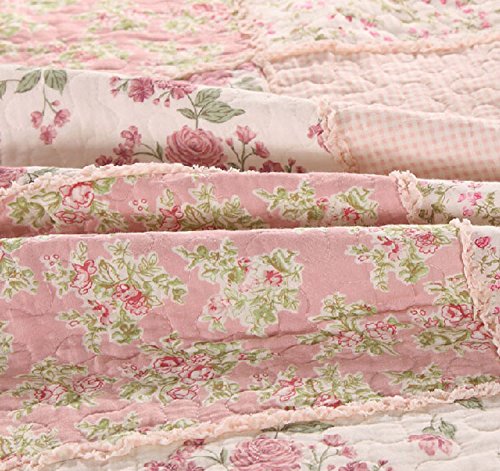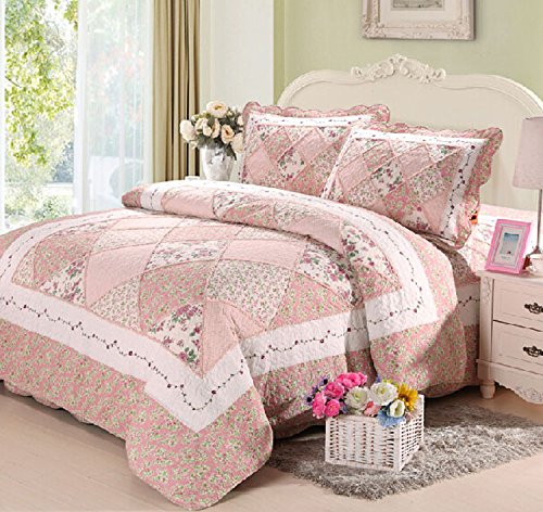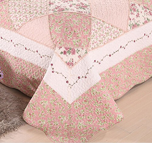 -. Title : Cooperation 100% Cotton Floral Pink Hue Queen Size Patchwork Quilt Bedding Set 3pc