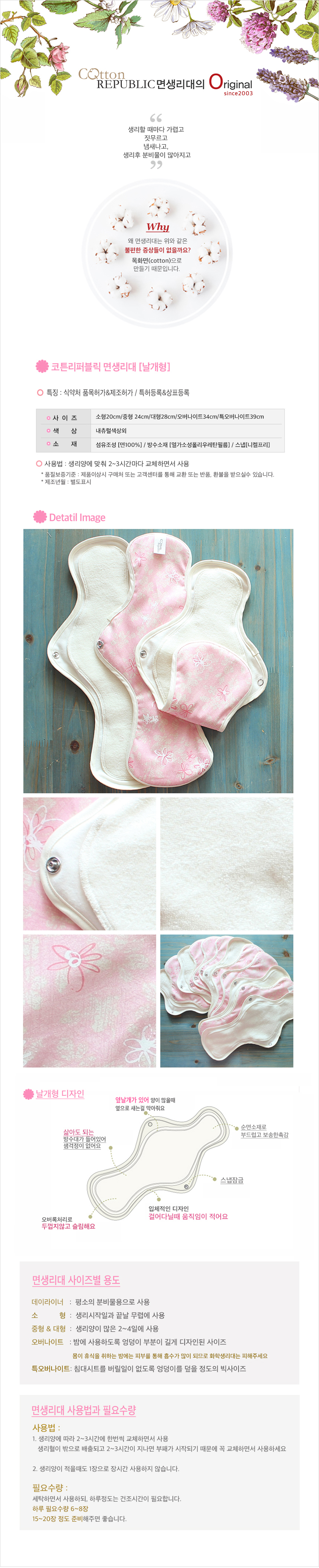 순면 날개형 [핑크뮬리] 오버나이트 3장세트