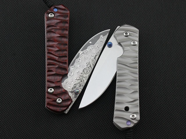| [해외] 59-60 HRC D2 또는 다마스커스 블레이드 티타늄 합금 핸들 접는 나이프 포켓 사냥 칼 캠프 전술 생존 edc 도구 |