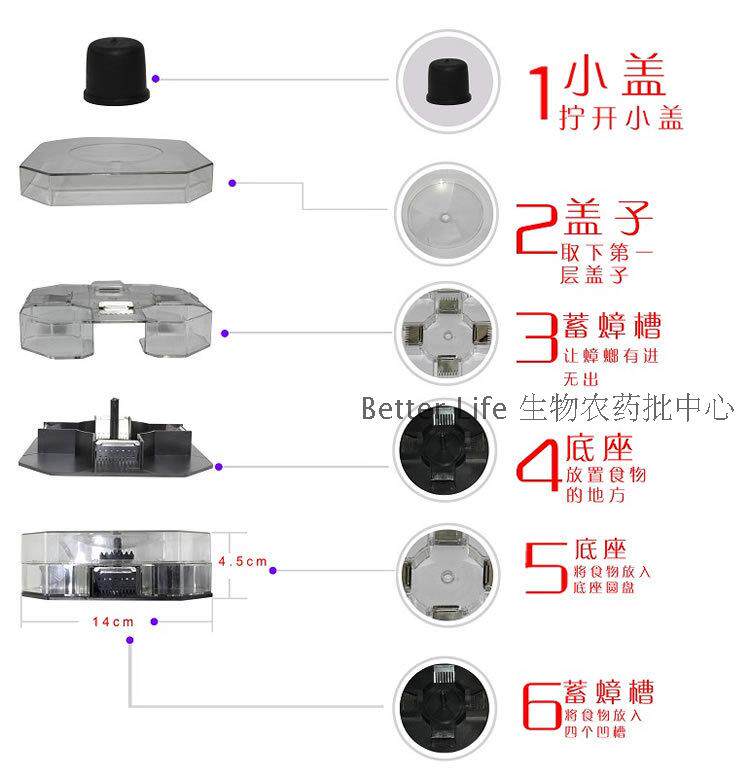 3, in the untreated cockroaches before death, please do not be separated from the upper cover seat, to prevent cockroach escape; (do not use detergent).