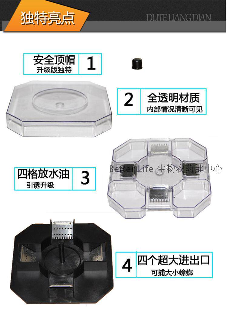 2, cockroaches smell fragrance will enter the middle seat, trapped in the upper groove.