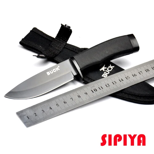| [해외] 새로운 벅 고정 블레이드 칼 420 스테인레스 스틸 야외 사냥 칼 서바이벌 나이프 EDC 도구 블랙 |
