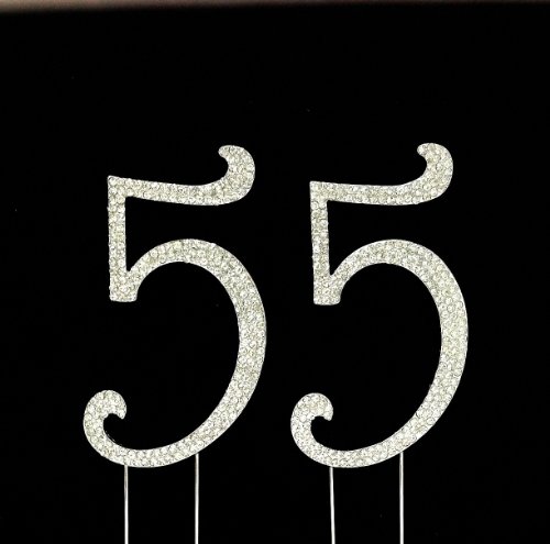 - MULTIPLE USES AND A KEEPSAKE: Use this as a cake topper for 55th birthday or anniversary, a centerpiece, part of a floral arrangement or place setting. Remove the metal prongs after the party and save this as a keepsake. This is a must have bling cake topper for your birthday or anniversary party decoration.
