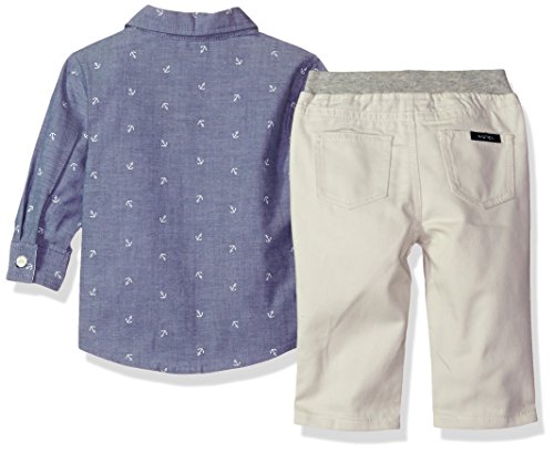 Nautica set which includes a long sleeve pattern button down shirt, short sleeve tee and pull-on twill pant.