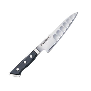 일본제 스테인레스 부엌칼 그레 스테《》강 골빈틈 15cm 적층강화목 핸들크기:칼날 길이15cm 일본제인:그레 스테《》강 핸들:적층강화목 수에 강한 적층강화목을 사용.인몸과 무늬의 사이에《즈바》가 부착에 튼튼하고 손질하기 쉬운 부엌칼입니다.양 끝에서 가운데가 오목 들어간 모양 부분으로 공기가 들어 가는 것(일)에 의해식재료의 칼 떨어지가 좋고, 가벼운 칼이 드는 정도를 실현 했습니다.