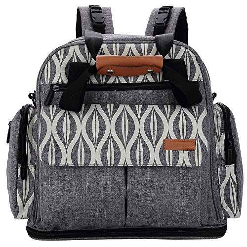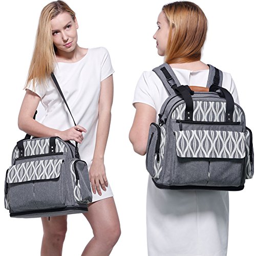 Lekebaby Expandable Diaper Bag Backpack Tote Messenger Bag for Mom and Girl in Grey