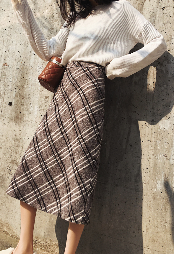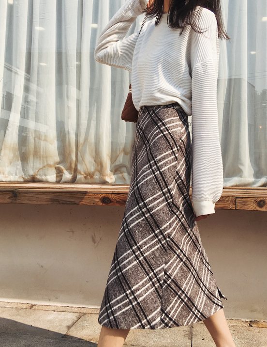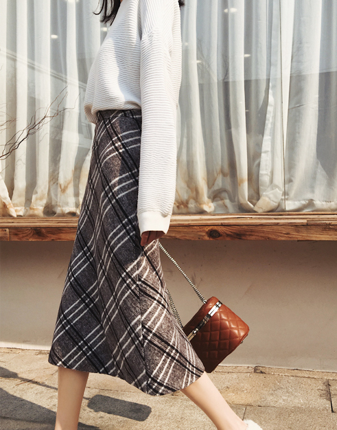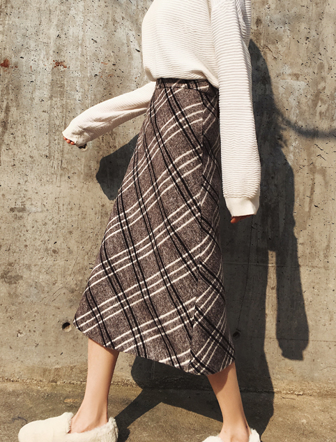 レトロで大人っぽい印象の膝下丈チェック柄スカートです。