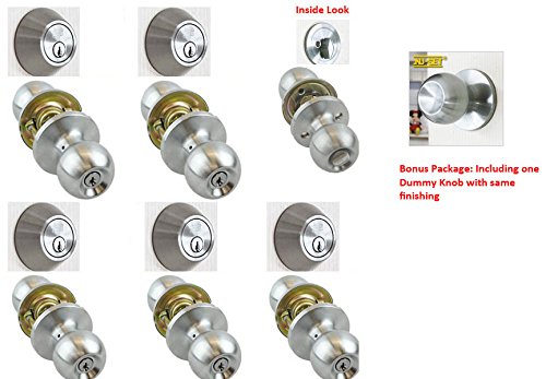 -. Feature : 5 NuSet Entry Door Knobs and 5 Single Cylinder Dead Bolts in Satin Chrome Finishing / Dead Bolt Has Thumb Turn On The Inside To Lock and Unlock / These locks come keyed alike. One key opens all locks! / Grade 3 Equivelent with a Limited 15-Year Mechanical & Finish Warranty