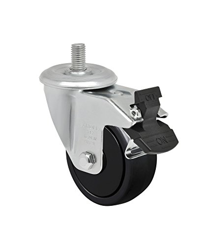 Schioppa L12 Series, GLEFD 312 NPP G, 3 x 1-1/4" Swivel Caster with Total Lock Brake, Non-Marking Polypropylene Wheel, 150 lbs, 10 mm Diameter x 25 mm Length Threaded Stem