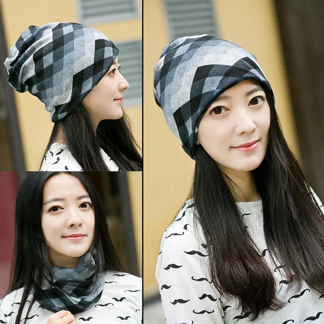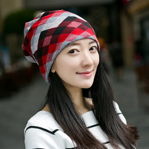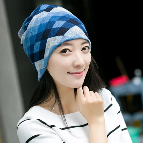 | [해외]미야 모나 그리드 터번 모자 여성 비니 브라가 Cuello 모자 격자 더미 캡 니트 여자 부드러운 보닛 M230-M232 |