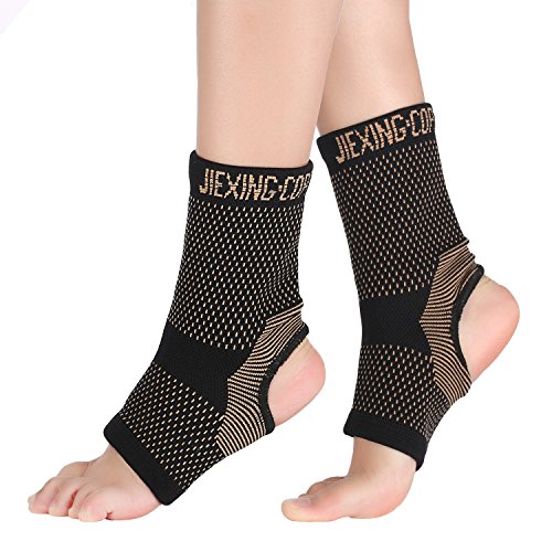 JIEXING Copper Compression Ankle Brace for Plantar Fasciitis Support,Injury Recovery Joint Pain,Eases Swelling,Running,Golf,Hiking Sports for Both Men and Women