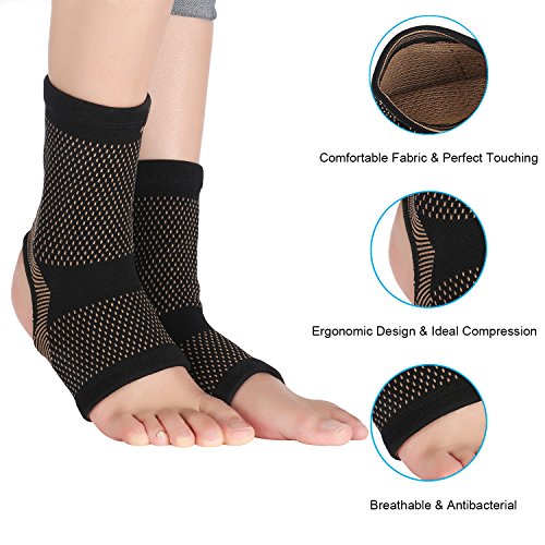- AMAZING EFFECT:Copper compression ankle braces provided much needed natural pain relief from Plantar Fasciitis and other foot conditions.They also provide ankle and heel arch support for those with injuries and other chronic conditions,make you get the best out of life.Helps improve blood circulation and reduce muscle fatigue.