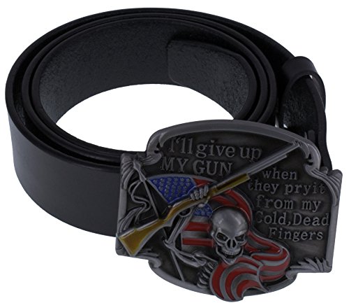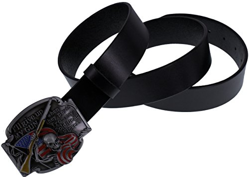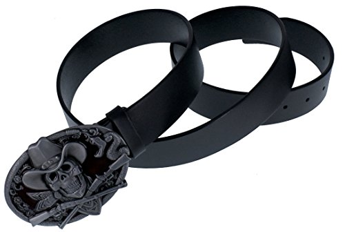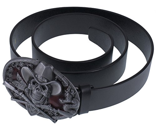 ABC STORY Genuine Cow Leather Gothic Skull Buckle Belt Strap For Men Women Black