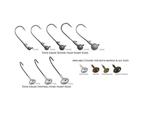 ReleaseDate : 2010-08-02 Studio : Strike King Lure Company Publisher : Strike King Lure Company Binding : Sports Product Description The Strike King Tour Grade Football Shaky Head is the pro's design for the best jig head for rigging baits for shaky style techniques and is great for regular jig head methods too. Special barb helps stand baits up for better "shaky head" action and holds ElaZtech, 3X and regular plastics perfectly in place. The 60 degree, flat eye Gamakatsu hook keeps the line knot in the proper place and enables better hook sets. The hook eye is flush with the head for a more streamlined look and is more efficient in cover. The wide head enhances feel of the bottom and adds to stand up ability. 0