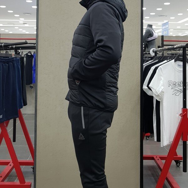 OS M 하이브리드 자켓은 몸통에 패딩으로 돼 있는 트랙 자켓입니다. 겨울철 아웃도어 트레이닝에 적합한 제품입니다.