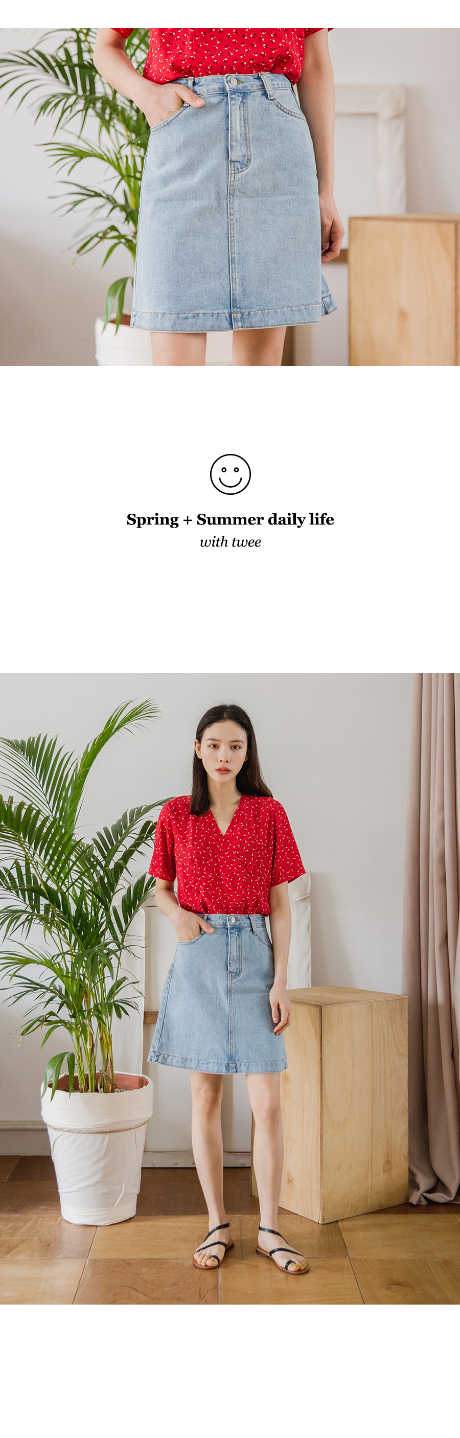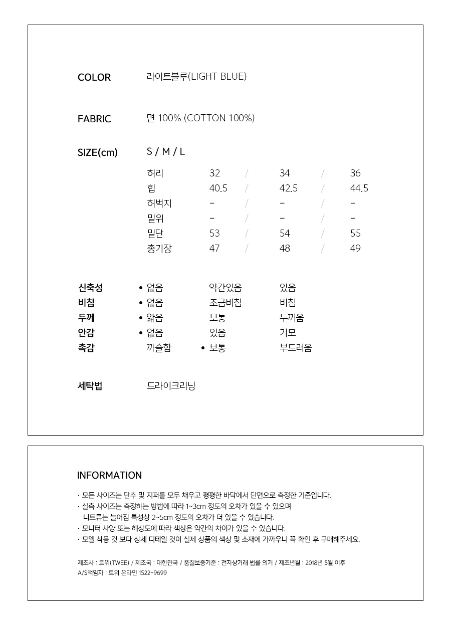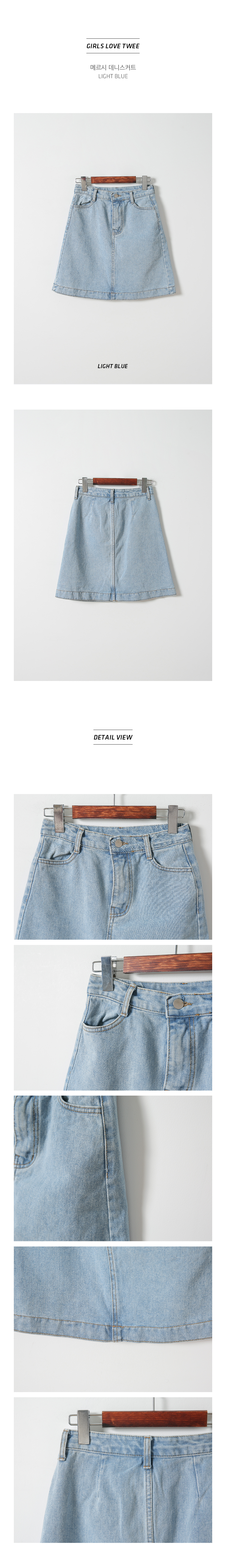 MD COMMENT걸리시하면서도 매치하기좋은연청톤의 데님스커트입니다 반하이웨스트 디자인으로 허리라인은안정감있게 잡아주구요 적당히 가벼운 두께의코튼소재로 여름까지 쭉~ 입기좋답니다 너무짧지도 길지도않는 기장감으로 부담없이 즐기잽 수 있는 아이템이에요!