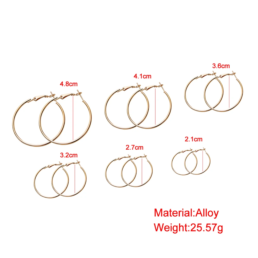 Model Number:Vintage Gold Color Big Circle Hoop Earrings